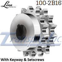 Double Finished Bore Sprocket For Chain Size: 100-2 (1-1/4" Pitch) For Double Roller Chain. Number of Teeth: 16. Pitch Diameter: 6.407". OD: 7.034". Hub Style: B (Hub One Side). Hardened Teeth. Bore: 2-11/16" w/ 3/4"x3/8" Keyway & (2) Setscrews.