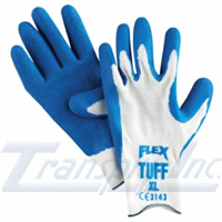 Memphis Glove Premium Latex Coated String Gloves, Natural Rubber Provides Abrasion Resistance, Lining: Cotton/Polyester, Coating: Latex, Style: Textured Palm & Fingers, Cuff Style: Knit-Wrist, Color: White / Blue. Item # MMG 127-9680XL. Size: Extra Large.