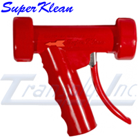 Brass Nozzle w/ Red Cover. Standard Spray Nozzle. Max Rating: 150psi / 200°F. Durable Rubber Cover. 1/2" Female NPT Inlets On All Nozzles. Insulated Trigger. For Water Use Only. Adapter: No Adapter.
