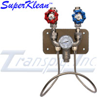 Stainless Steel Hot & Cold Water Mixing Unit. Wall Mount. Includes:Global Valves, Check Valves, Hose Rack & Mounting Bracket. Max Pressure:150psi. Max Temp:200°F. Not For Steam. Inlet/Outlet: 3/4"NPT. Y-Style Body w/ Check Valves & Ball Joint Unions.