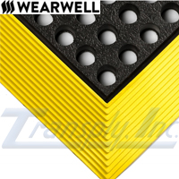 Industrial Worksafe Group 476-GR Anti-Fatigue Matting. Suitable Environment: Dry/Wet. Drainage Style. Compound: Natural Rubber (GR). Warranty: 1 Year. Good For Water or Dry Debris Environments. Color: Black with Yellow Boarder. Thickness: 5/8".