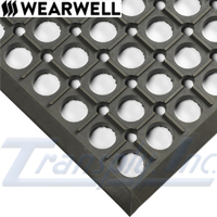 Group 478 Anti-Fatigue Matting. WorkSafe Light CFR. Color: Gray. Thickness: 1/2". Suitable Environment: Wet, Oily. Style: Drainage. Compound: Cutting Fluid Resistant Rubber. Warranty: 1 Year. Lightweight.