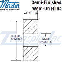 Semi-Finished Weld-On Hubs. Outside Diameter: 5-1/4". Length: 1-1/2". Inside Diameter: 1-1/4".
