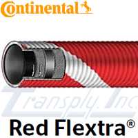 Red Flextra 100 Hose. ID: 4". OD: 4.53". Max WP: 100psi. Color: Red. Tube: Rubber(High Oil Resistance). Cover: Red Rubber (Low Oil Resistance). Temp Range: -30°F to 180°F. For Transferring Ethanol Blends, Gas, and Other Petroleum Based Products.