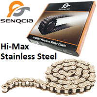 Pitch: 1", Roller Dia.: .625", Width Between Inner Plates: .625", 10Ft. Per Box, Riveted, Includes Connecting Link, Hi-Max - Economical High Performance Roller Chain Series. Stainless Steel - 304SS Offers Very Good Corrosion Resistance.