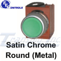 Satin Chrome Round Metal. Button Color: Green. Series BM22.