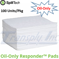 Oil Only Responder Pad. Color: White. Composition: Polypropylene. Absorbs: 22.85oz. Per Pad. Economical MeltBlown Mat For Oil Response. Floats Even When Completely Saturated-For Marine Spills. Size: 15"(w) x 19"(L). 100 Pads/Package. SingleWeight.